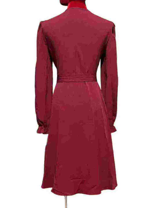 纯色裹胸款春秋季衩领束带灯笼袖长袖连衣裙