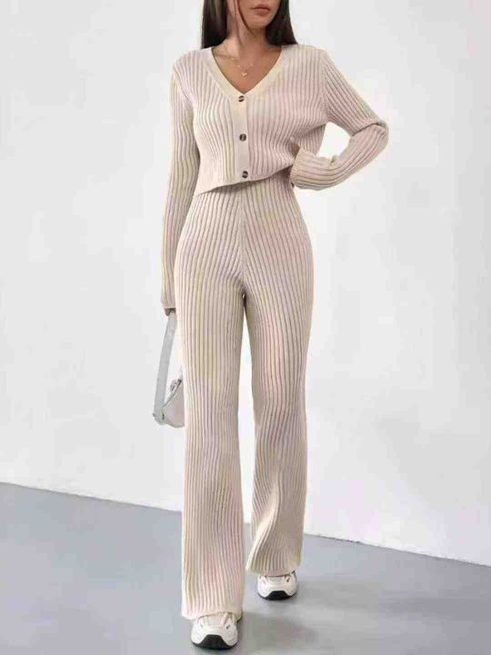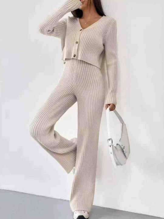 捡漏款,秋冬新款女装毛衣开衫+毛衣阔腿裤2件套,独立...