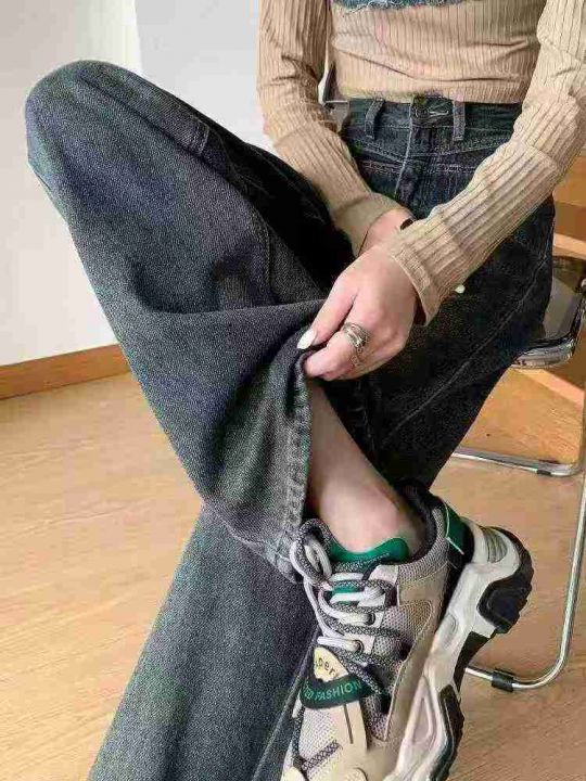 ☕️水泥灰阔腿牛仔裤女秋冬新款高腰显瘦宽松设计感直...