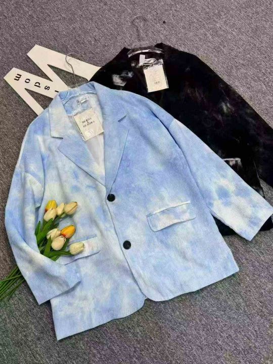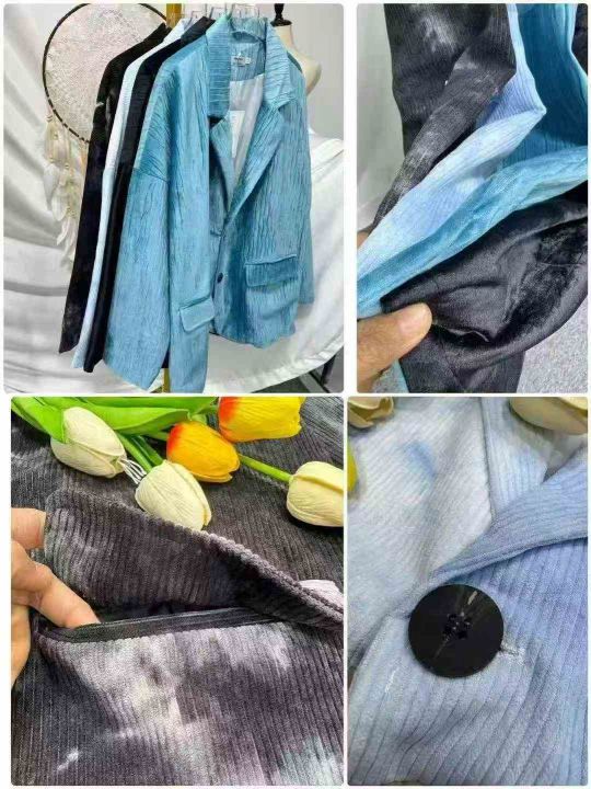 捡漏125件韩版男女同款高质感酷帅宽松网红设计感小众丝绒扎染西服外套,独立包装,统一吊牌,码数S-3XL,全清13.8元。 货号:1323