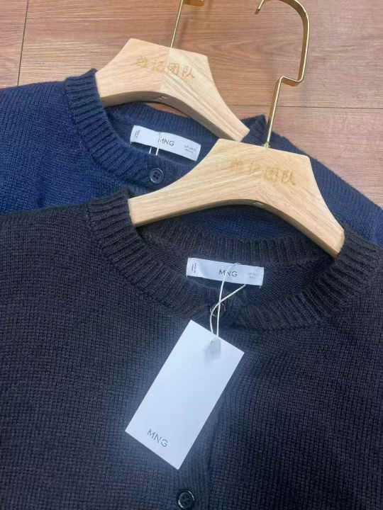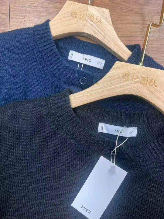 Mng 原单圆领开衫毛衣黑色多,1600件。 货号:2...