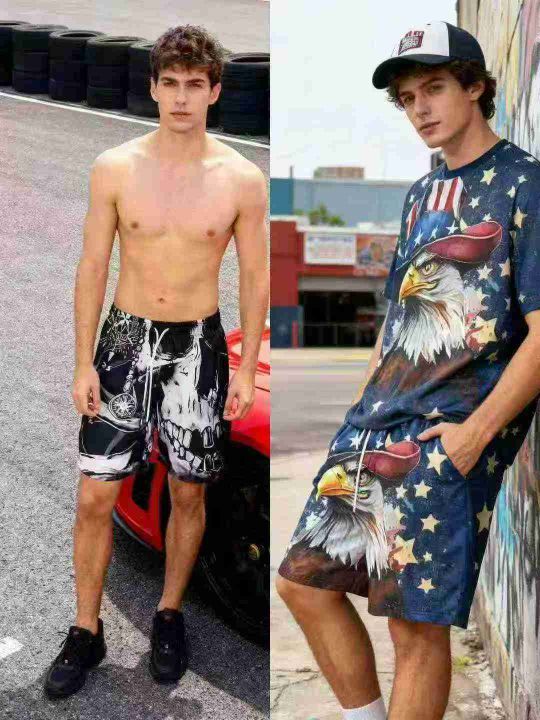 2025新款欧美潮流3D数码印花宽松休闲短裤,独立包装,码数S-6XL,5000件,全清5.8分货➕1