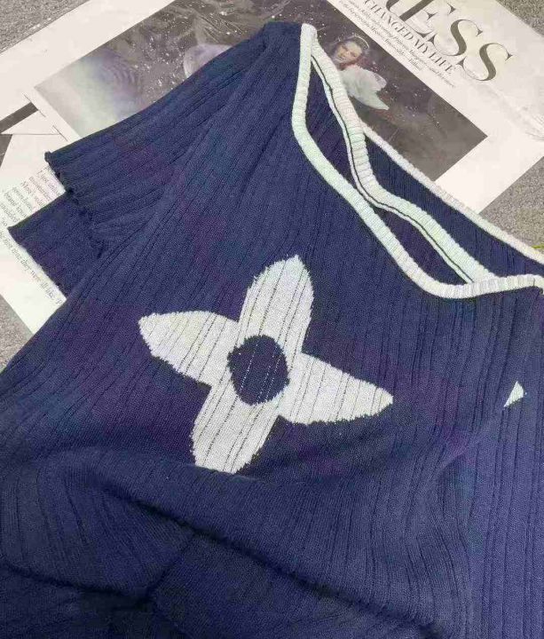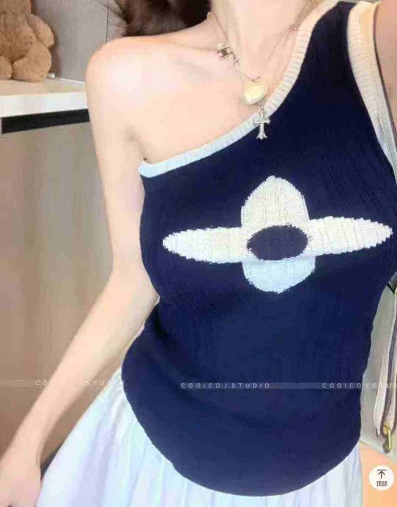 夏季高级感无袖斜肩撞色提花针织吊带小背心,独立包装...