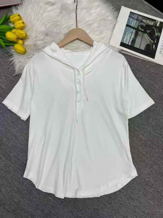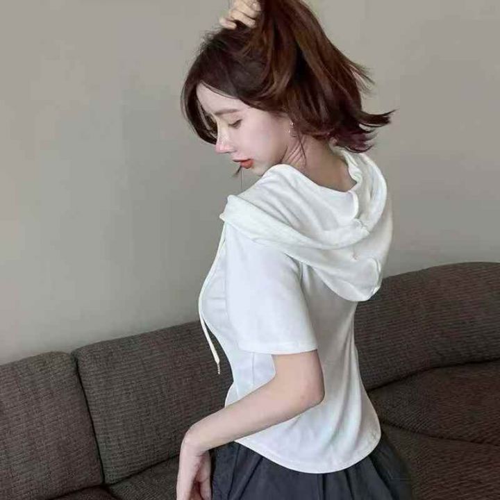 捡漏100件不规则连帽上衣打底衫夏季洋气修身显瘦短袖t恤女,独立包装,码数1-4码,货号1025#57