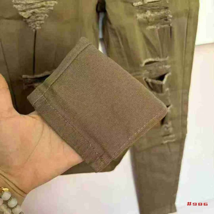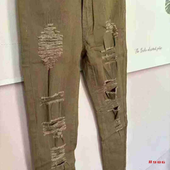 6.8元捡漏[玫瑰][玫瑰] 男女同款显瘦铅笔破洞哈伦牛...