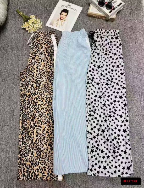 潮流女休闲裤豹纹星星条纹直筒裤,图片款,品质好,数量150件左右,码数s-xl,5件一包装,全清4.9(不分货)@_@