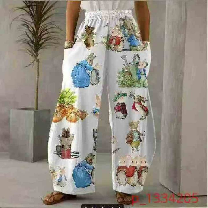欧美外贸春夏宽松卡通兔子印花宽松阔腿裤可外穿宽松口...