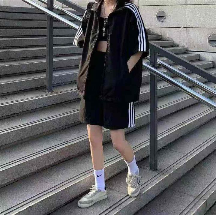 情侣款开衫拉链套装80件9.5,撞色条纹,松紧腰,码数2-3-5码(M-L-2XL),...