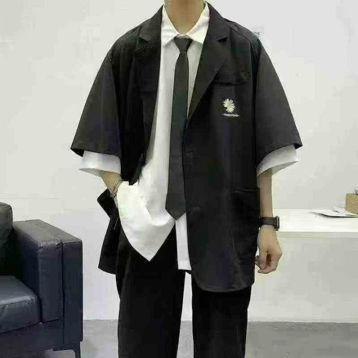 200件左右,港风刺绣刺绣小西装外套男夏季加肥加大码潮胖人宽松短袖西服,独立包装,码数M-2xL,全清6.8元,分货➕0.5