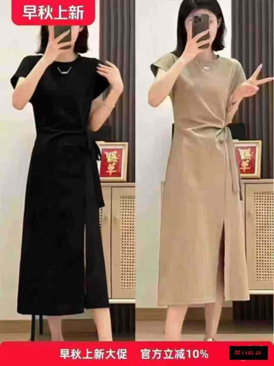 大码弹力设计感绑带T恤裙女夏季法式气质通勤显瘦小众收腰开叉连衣裙5000件,独立包装带吊牌,货品干净整洁,工厂订单货,码数齐全,图片款式,尺码M~3XL.全清福利价13.8元,分货➕1@_@