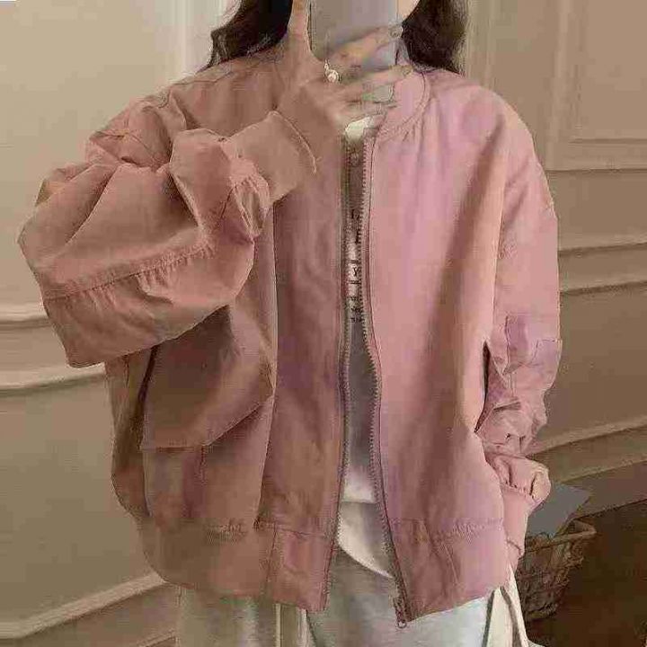 棒球服外套女2025年新款春秋季美式复古宽松立领夹克上衣.独立包装S一XL码.580件左右.清货价12.8块。