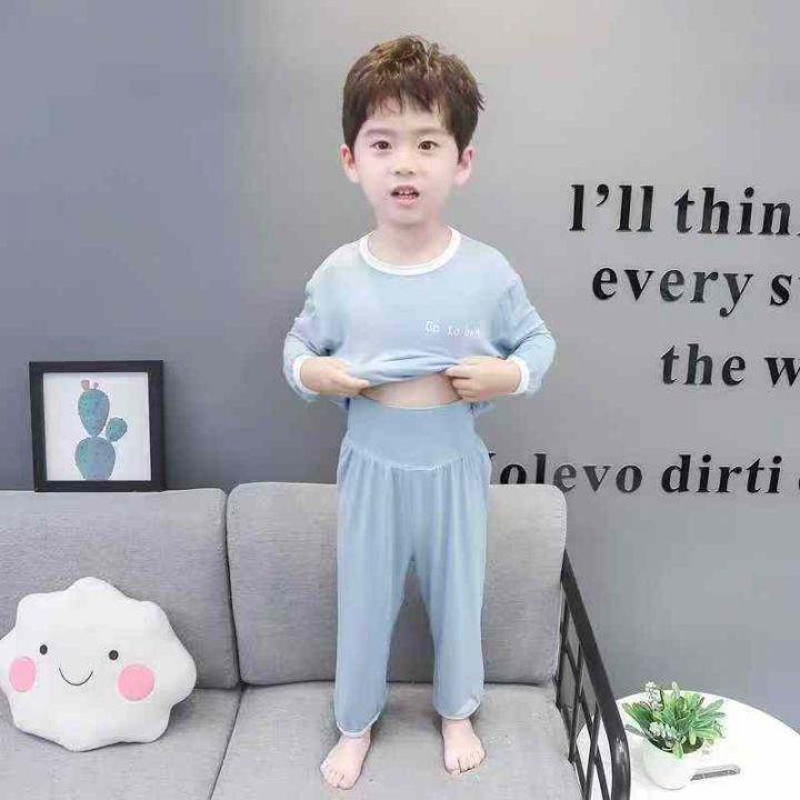 电商仓回收246套春秋季长袖宝宝高腰护肚空调服儿童薄款家居服,码数90-120。面料柔软舒适有弹力,适合宝宝贴身穿着。有独立包装,分货➕0.5。 货号:1323
