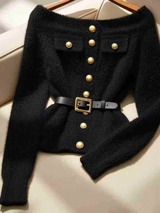 全清18.8,气质名媛黑色一字肩水貂绒毛衣女装2025秋冬独特超好看加厚轻熟掐腰毛衣,均码11件