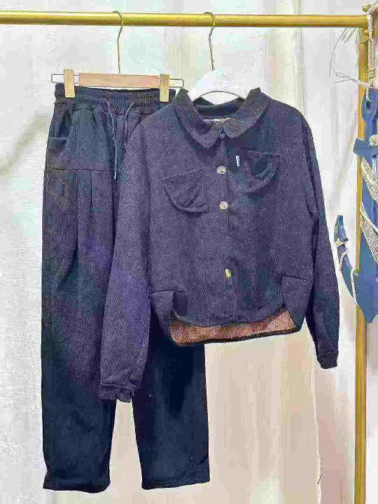 翻领灯芯绒保暖套装女2025冬季加绒加厚宽松显瘦卫衣直筒裤两件套,数量230套,码数mlxl,独立包装,全清17.8元