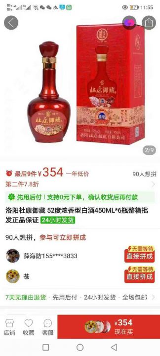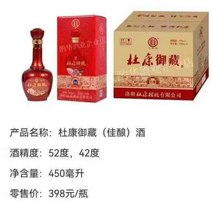 这款酒卖的是口感,不是卖的包装,极力推荐个人品尝,62箱杜康御藏,洛阳杜康总厂生产,100元一箱,一箱起发,52度,450毫升,一箱6瓶,一级纯粮酒!