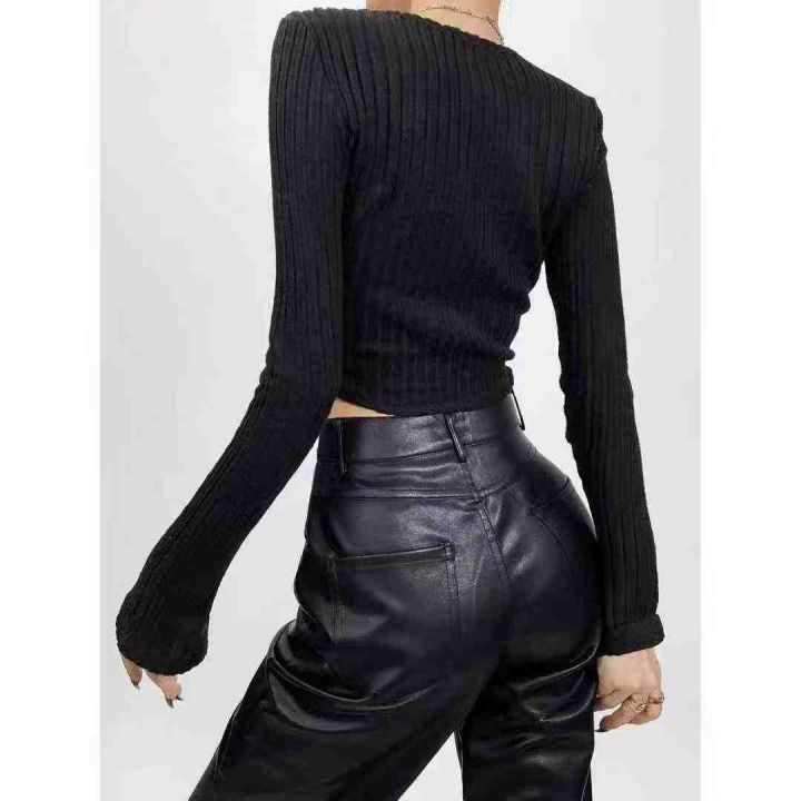 电商仓回收770件黑色辣妹收腰褶皱长袖T恤方领打底衫,码数S-2XL。面料柔软有弹力,百搭收腰显瘦,全部独立包装。分货+0.5。 货号:1303