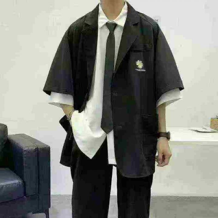 200件左右,港风刺绣刺绣小西装外套男夏季加肥加大码潮胖人宽松短袖西服,独立包装,码数M-2xL,全清6.8元,分货➕0.5