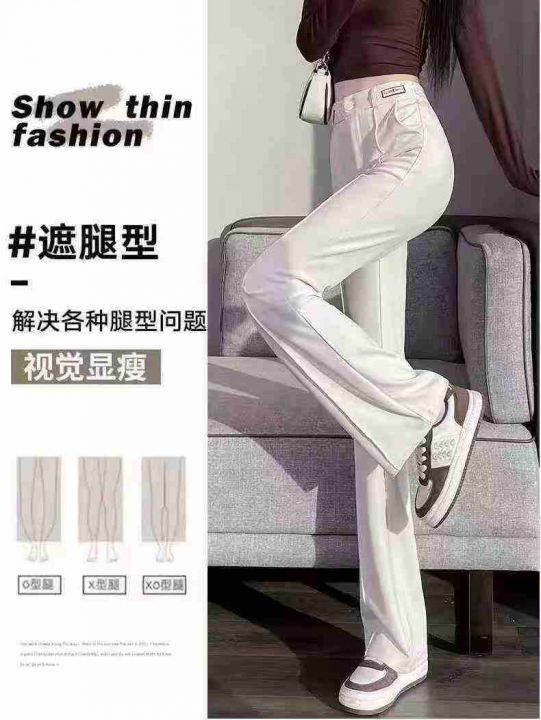 13.8清298件喇裤女春夏季薄款窄版高腰显瘦垂坠感弹力冰丝女裤子黑色开叉喇...