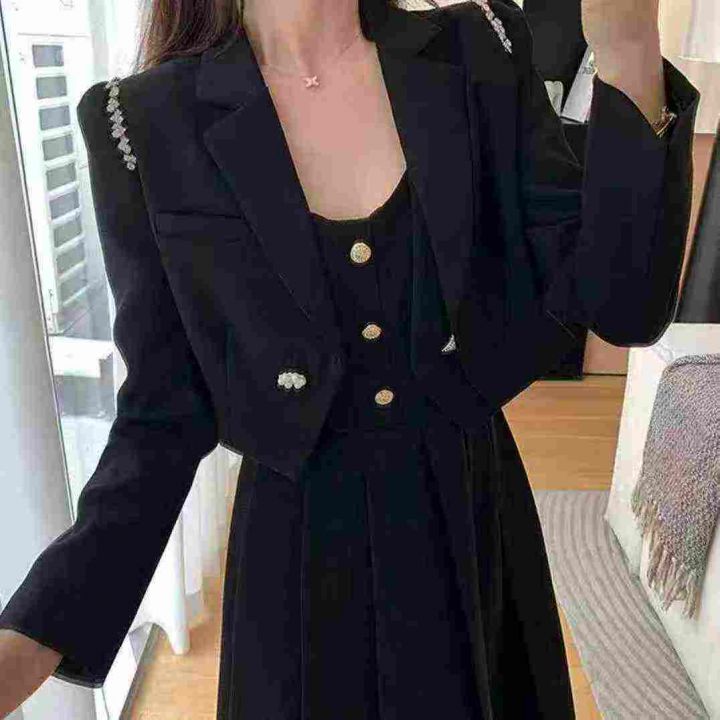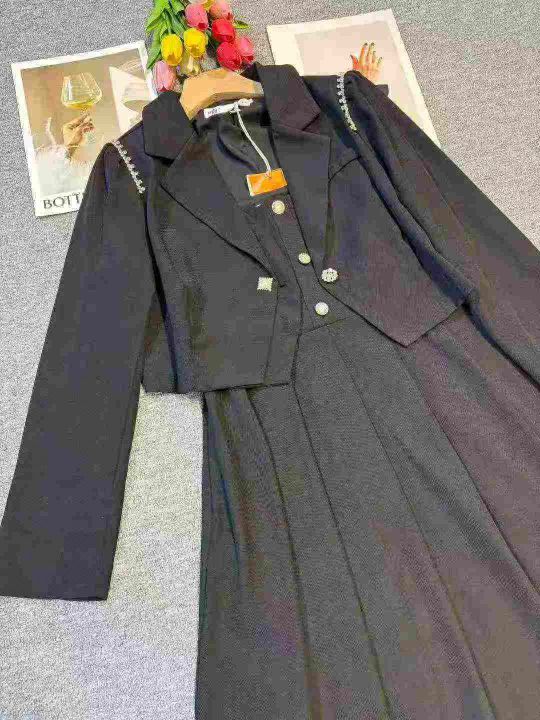 高级感时尚收腰遮肚外套吊带套装裙,[爱心]40套左右,L码为主,码数M-2XL,穿80-140斤,万佳档口货,原包装️无瑕疵,[666]实体店品质