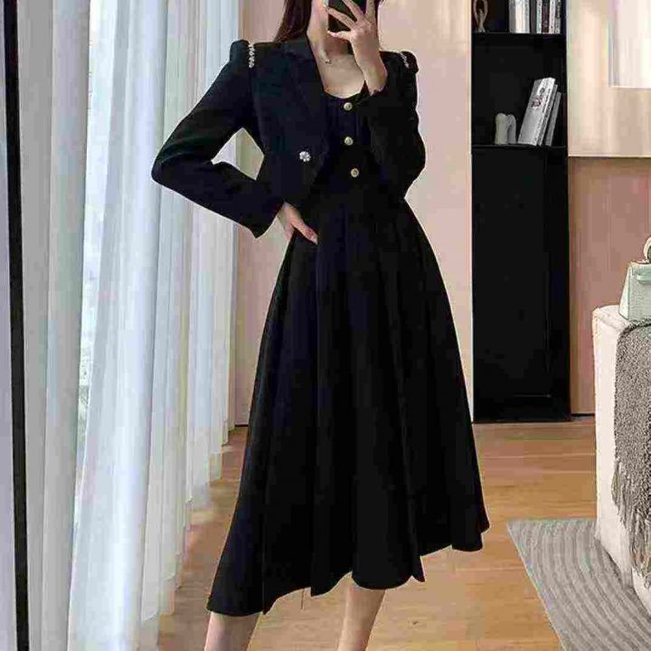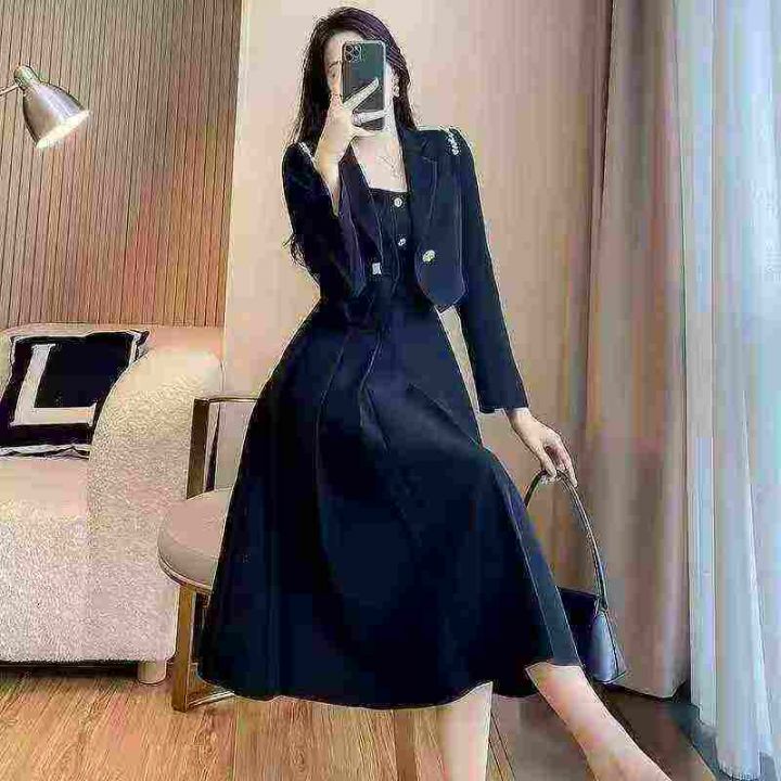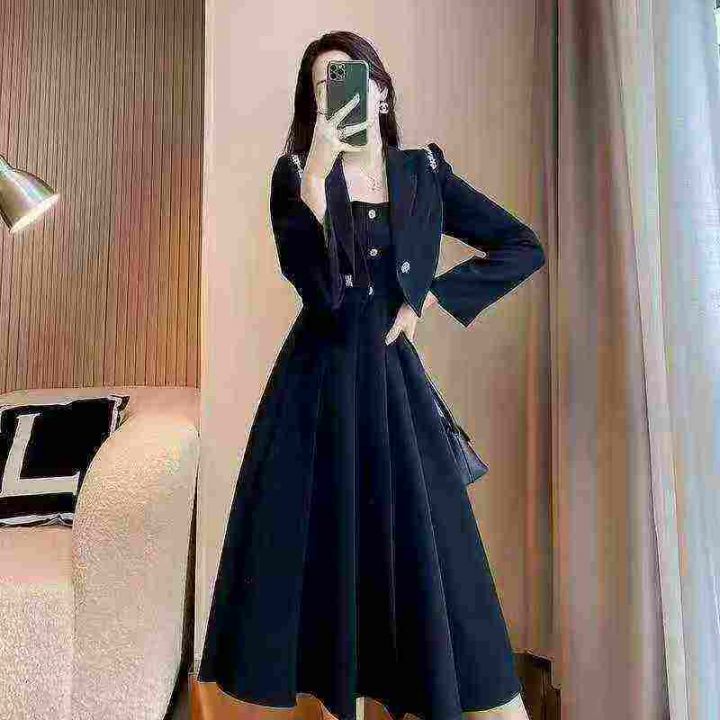 高级感时尚收腰遮肚外套吊带套装裙,[爱心]40套左右,L码为主,码数M-2XL,穿80-140斤,万佳档口货,原包装️无瑕疵,[666]实体店品质