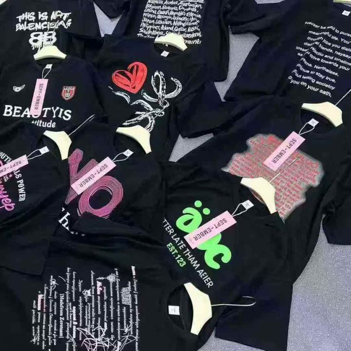 均码, 宽松版 ,统一吊牌独立包装。单款黑色多花型,潮牌短袖T恤女夏季新款爆款美式宽松纯棉半袖设计感小众上衣