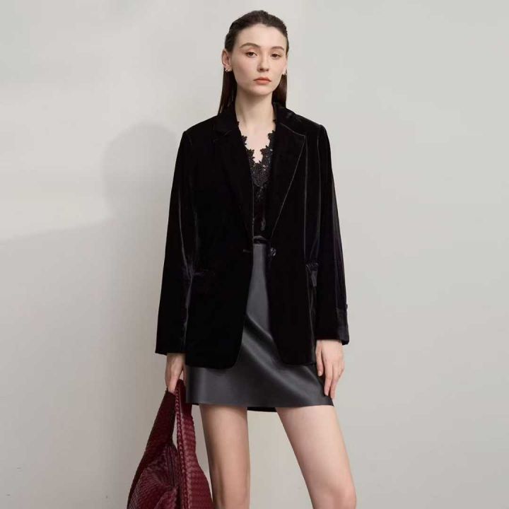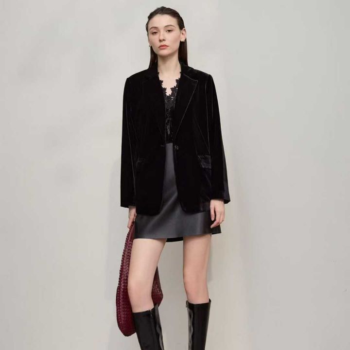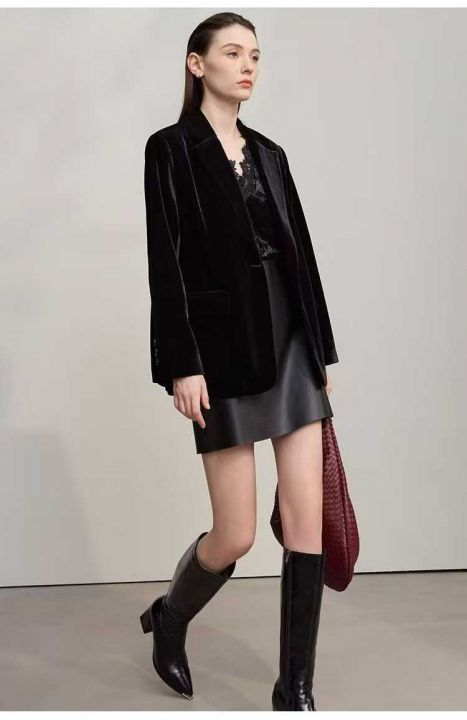 秋冬轻奢低调优雅直筒显瘦黑色外套,35件左右,码数S-XL