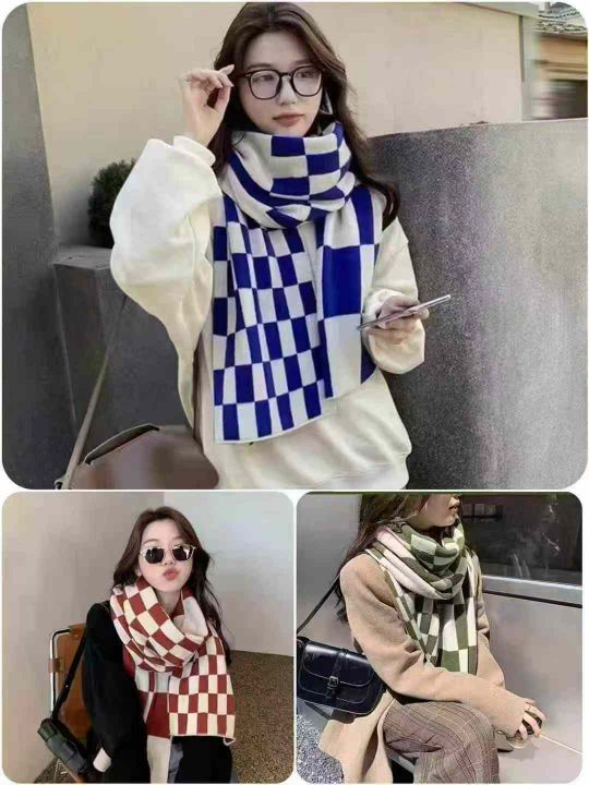 5520件棋盘格保暖百搭针织围脖。图片款。手感柔软,品质好。长160一