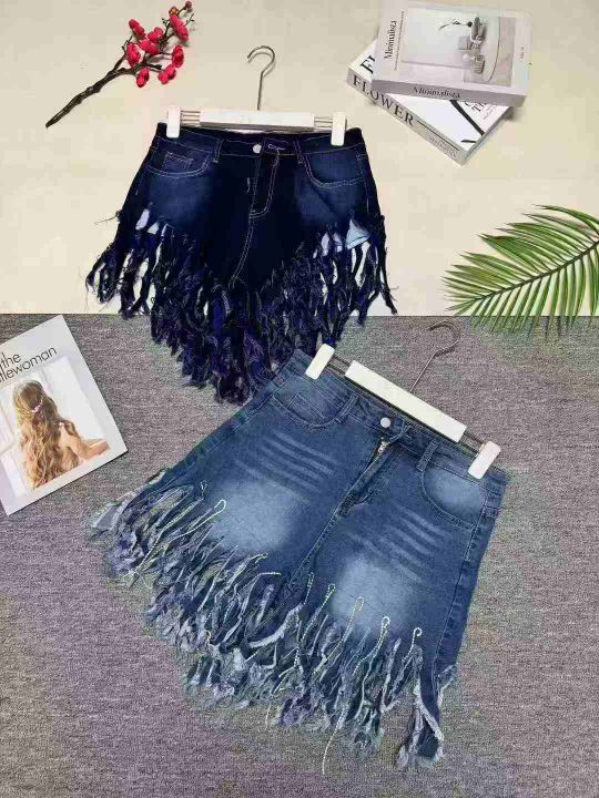 欧美高腰扎染流苏破洞毛边修身直筒短裤,数量200条左右,码数S-2XL,小整款带点杂,品质好,有独立包装。