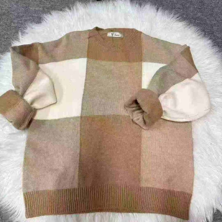 全清10.9,日系拼色针织衫女秋冬季新款宽松显瘦套头衫慵懒风高级感长袖毛衣,单款单色,均码40件,不分货。。 货号:1303