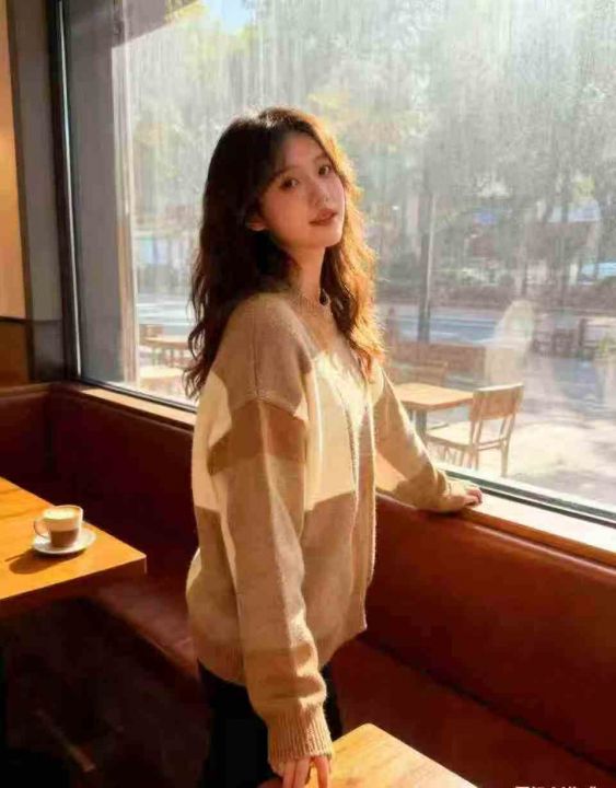 全清10.9,日系拼色针织衫女秋冬季新款宽松显瘦套头衫慵懒风高级感长袖毛衣,单款单色,均码40件,不分货。。 货号:1323