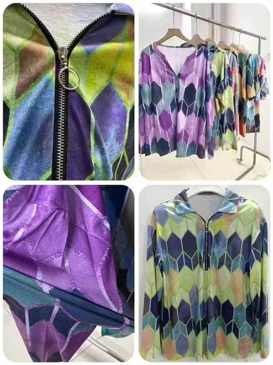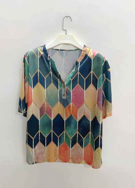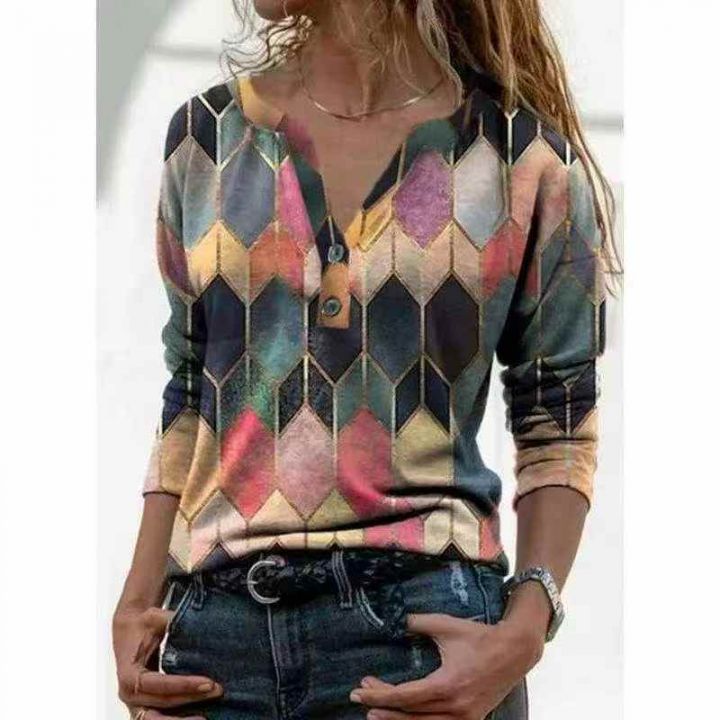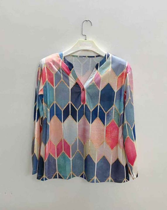 2935件外贸时尚印花撞色打底衫上衣女,尺码S~3XL,面...