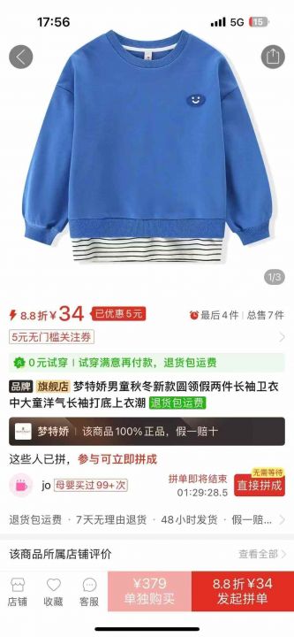 101件高品质假两件童装卫衣!纯棉,尺码100-150, 独立包装,全清4.8 不分货