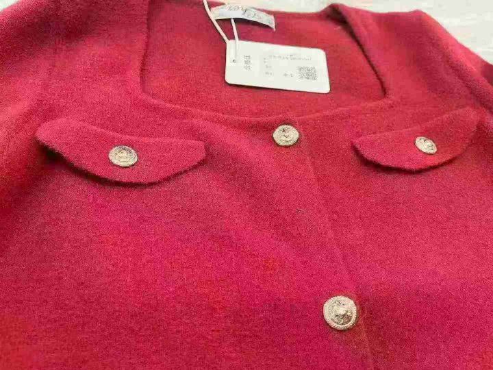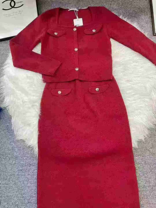 全清22.8,2025新款女富家千金短款方领针织毛衣圣诞红色高腰显瘦半身裙套装,码数m到2xl,31套不分货。 货号:1303