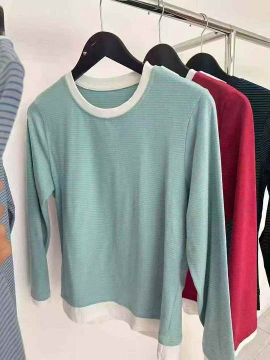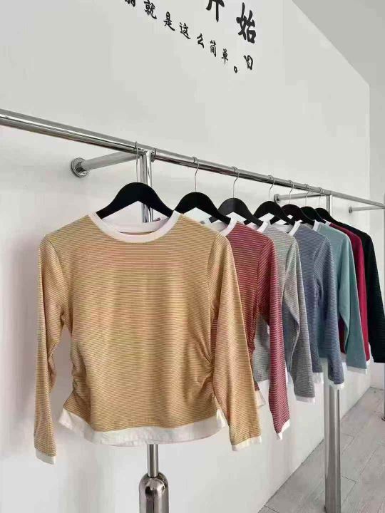 两个整款 颜色色系百搭 条纹控简直爱了 每个颜色都是自留款[色] 外穿打底都可以 拼接款洋气漂亮 直播 卖场 实体店都可以入手