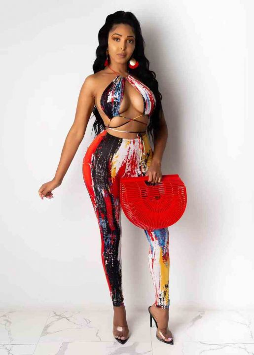 欧美女装时尚性感绑带套装 ,整款两色,数量190件,码数S-2XL码,高弹力品质好,有独立包装。