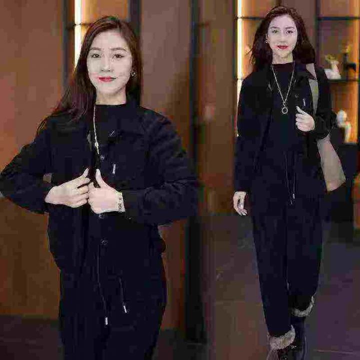 翻领灯芯绒保暖套装女2025冬季加绒加厚宽松显瘦卫衣直...