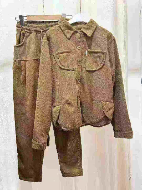 翻领灯芯绒保暖套装女2025冬季加绒加厚宽松显瘦卫衣直筒裤两件套,数量230套,码数mlxl,独立包装,全清17.8元。 货号:24862