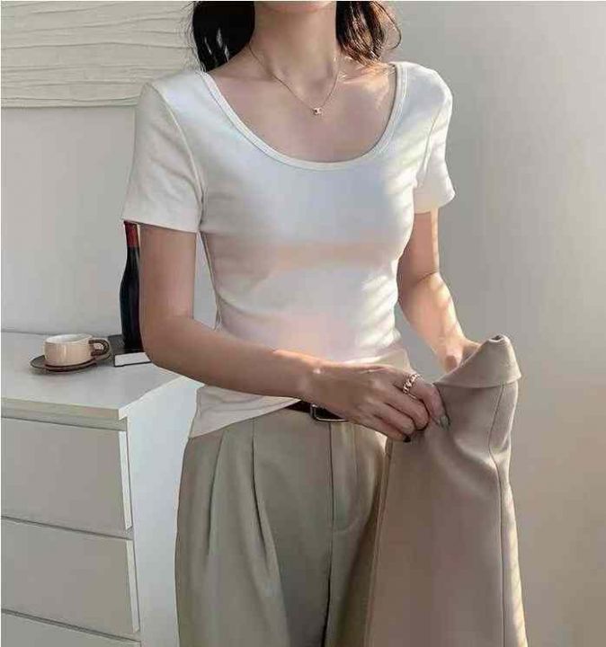 [月亮]:5.5清457件[月亮]:纯棉拉架棉白色高弹U领T恤...