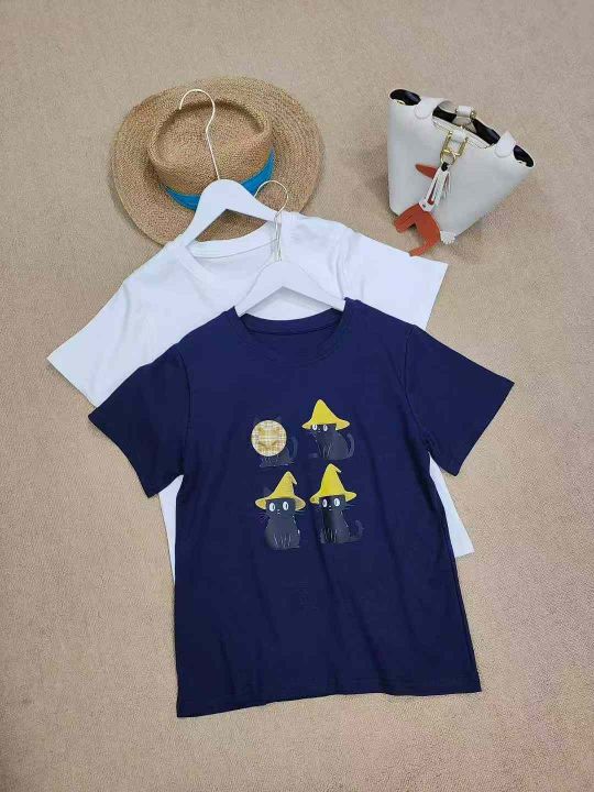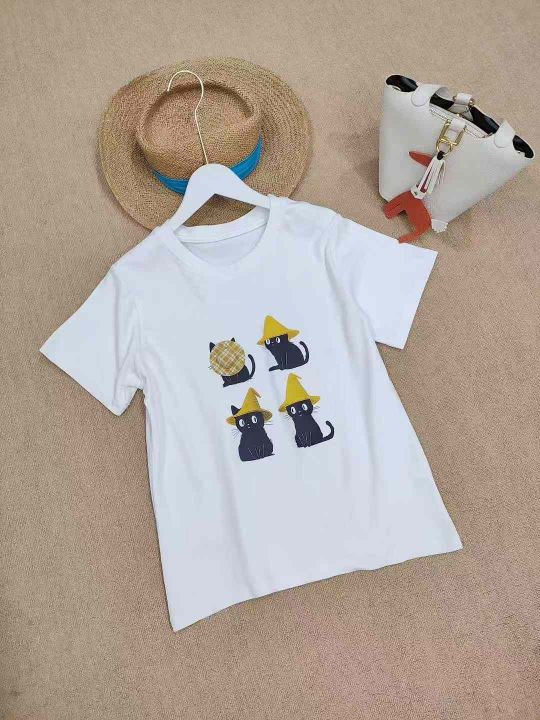 [月亮]:25新款猫咪帽子工艺纯棉拉架棉T恤