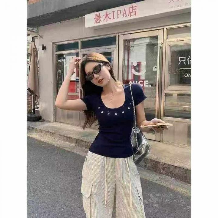 辣妹棉质U领短袖307件6.5,面料柔软高弹力,镂空设计...