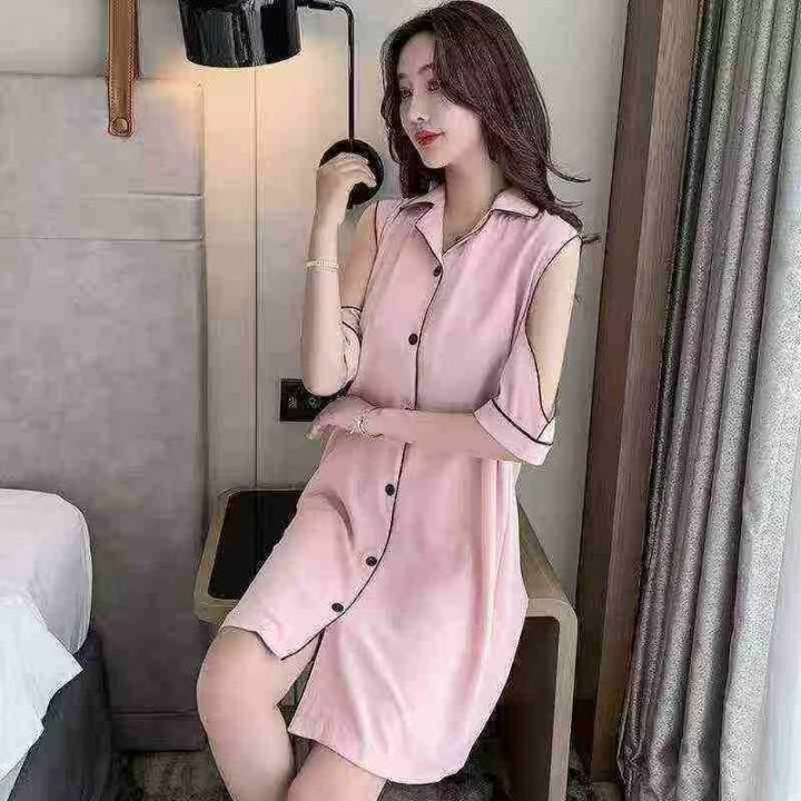 ① 网红冰丝性感露肩韩版宽松家居睡裙!独立包装,整...