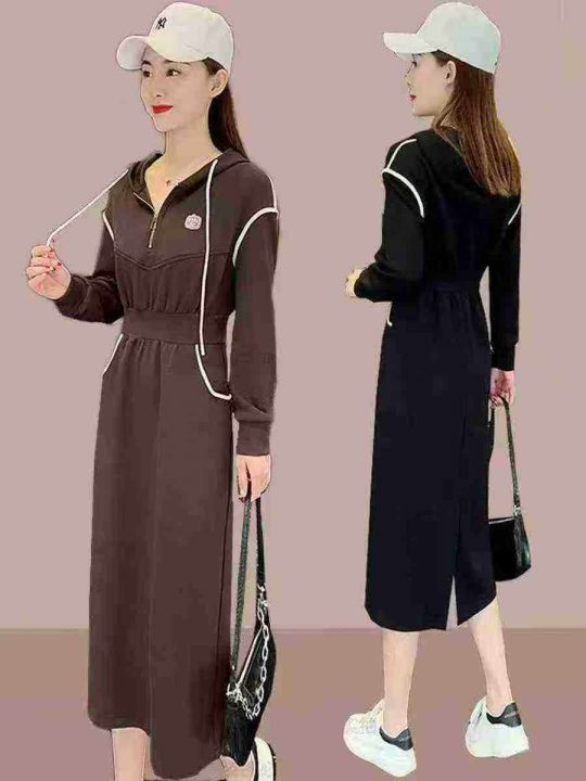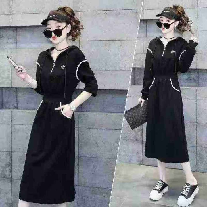 网红时尚拼接休闲流行设计感收腰显瘦显高卫衣连衣裙潮,独立包装,大货长袖多,码数2-6,数量129条,货号1114#20