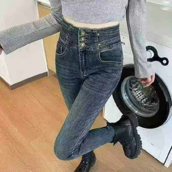 高弹力加绒牛仔裤小脚裤子显高铅笔裤子,独立包装带吊...