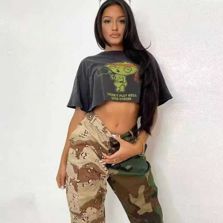 美式复古迷彩水洗工装裤男女同款宽松休闲百搭多口袋迷...