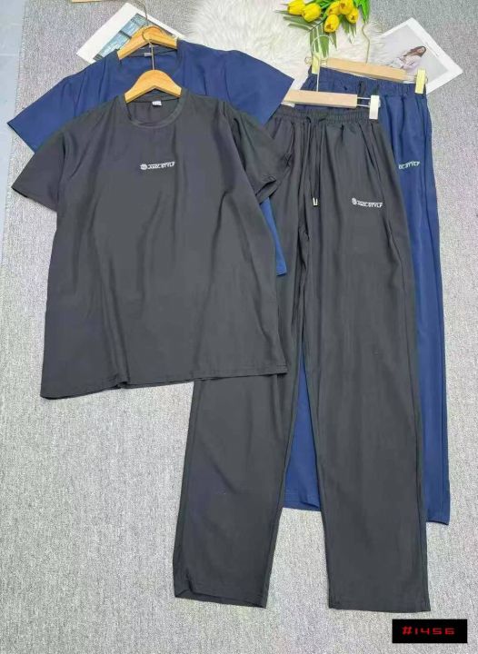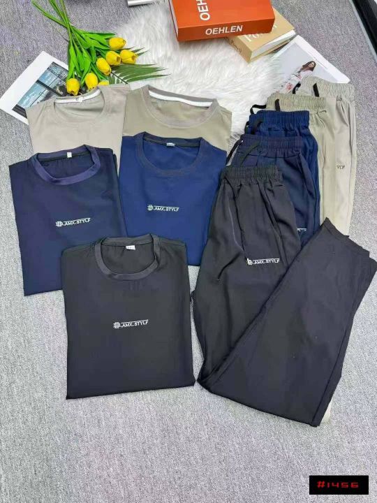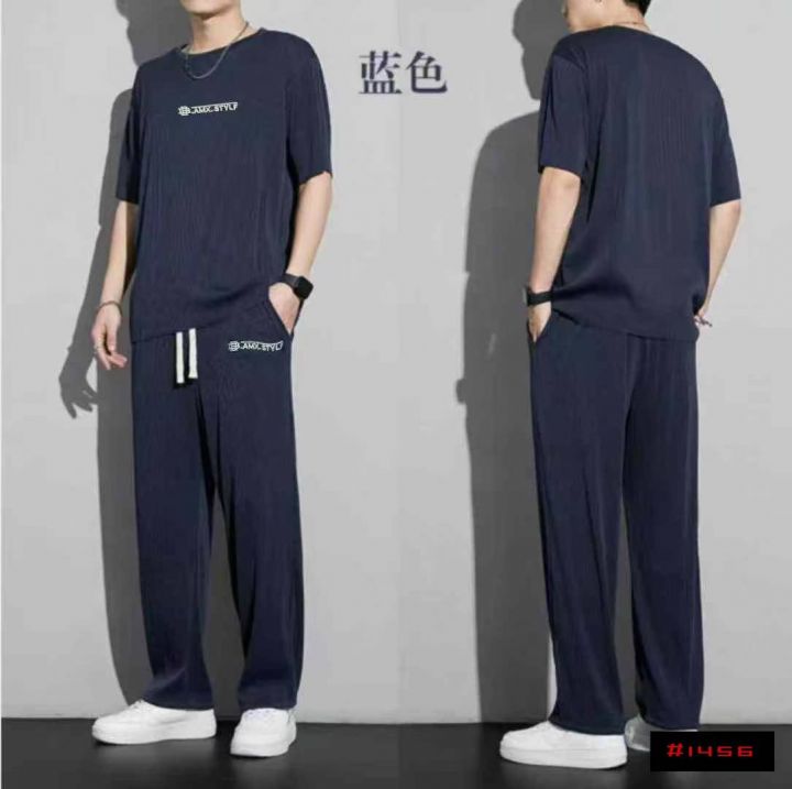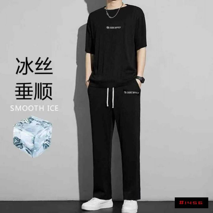 冰丝运动套装男士帅气夏季休闲长裤子短袖t恤ins速干垂感套裤,独立包装,后领包边,码数L-5XL,大货黑色为主,数量297套,货号1114#19@_@