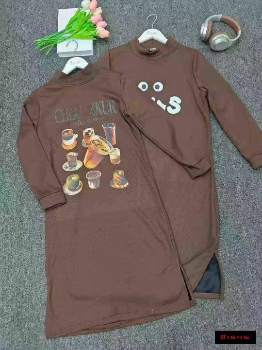 韩版学院风字母卫衣裙宽松休闲甜美长裙温柔长袖加绒连...