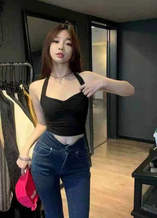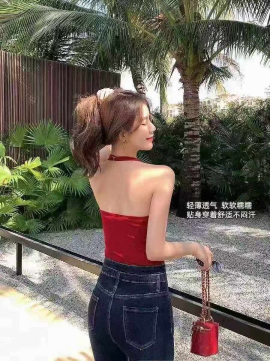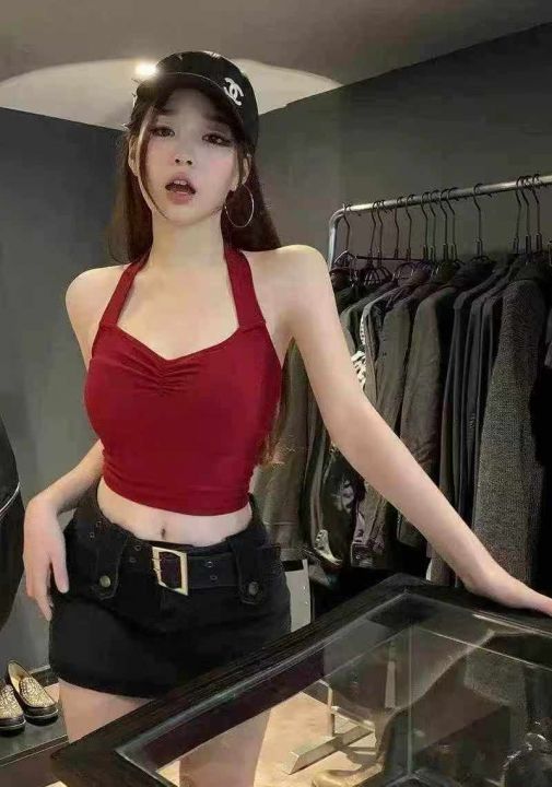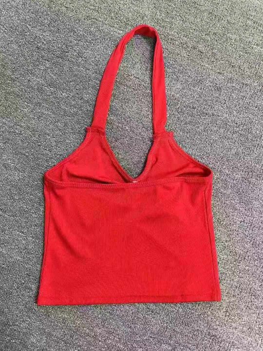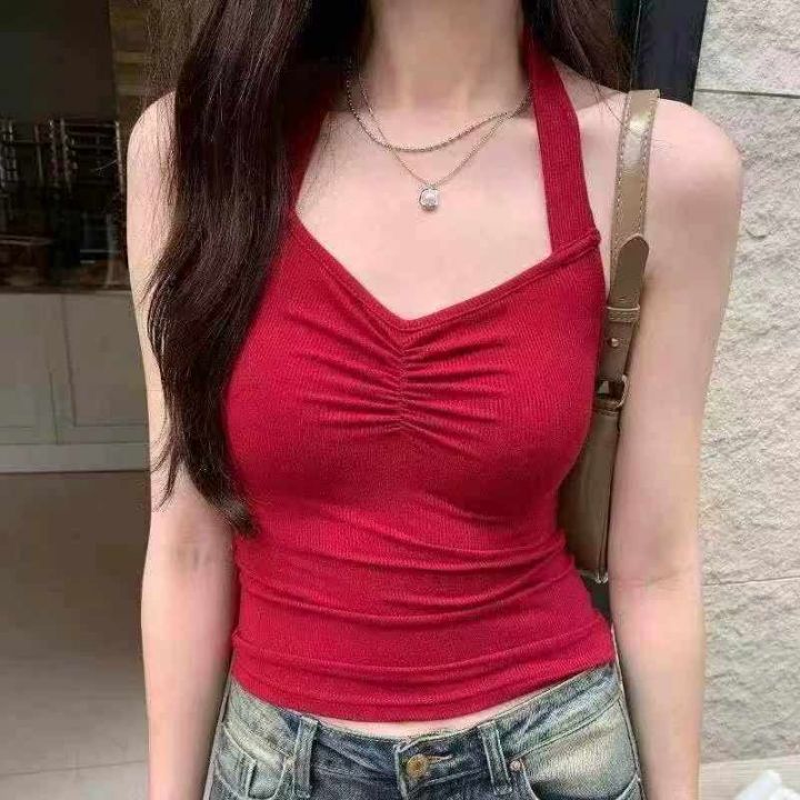 夏季女士性感辣妹挂脖露背小吊带,褶皱收腰显瘦,可外穿可内搭,弹力大,有独立包装,黑红两个色,整款,356件,均码。