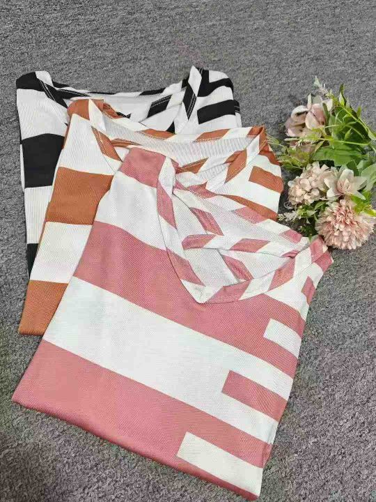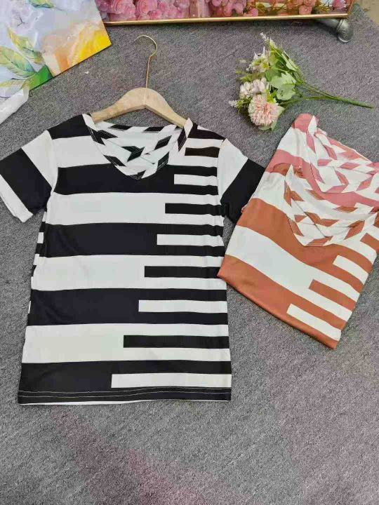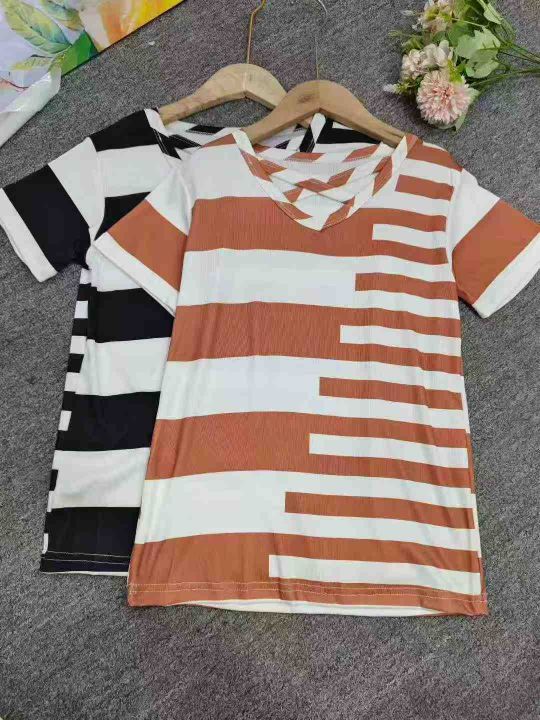 2025新款夏减龄遮肚显瘦条纹短袖女潮,整款3色,独立包装,650件左右,2-5码,4.9元清,。 货号:24862