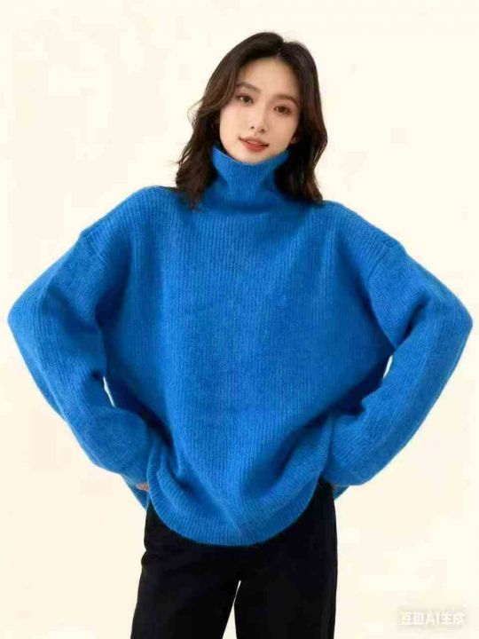 全清11.9,连帽套头重工毛衣女2025年秋季新款宽松慵懒风克莱因蓝针织上衣潮,单款单色,均码20件