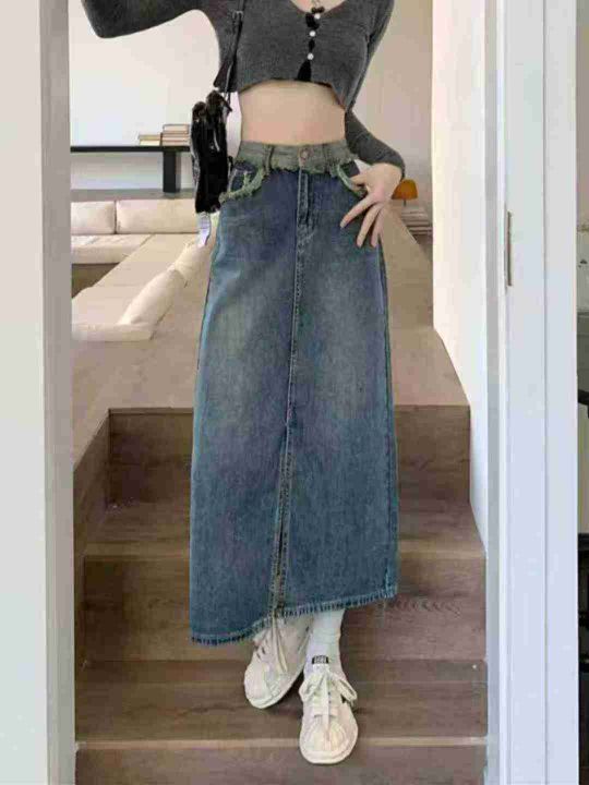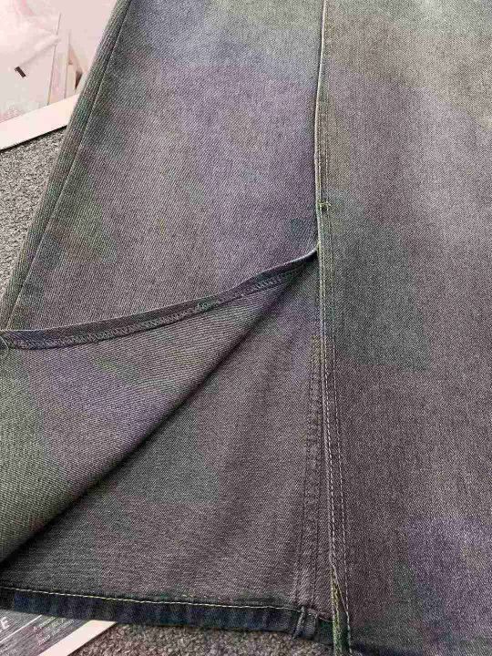 ☕️牛仔长裙夏季新款高腰设计感小众毛边开叉A字牛仔...